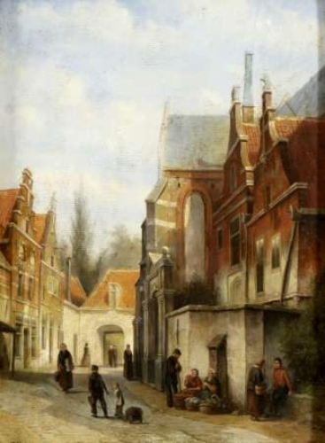 "Das Ständchen"Stehgeiger, Chellist und Klarinettenspieler vor dem Fenster einer jungen Frau